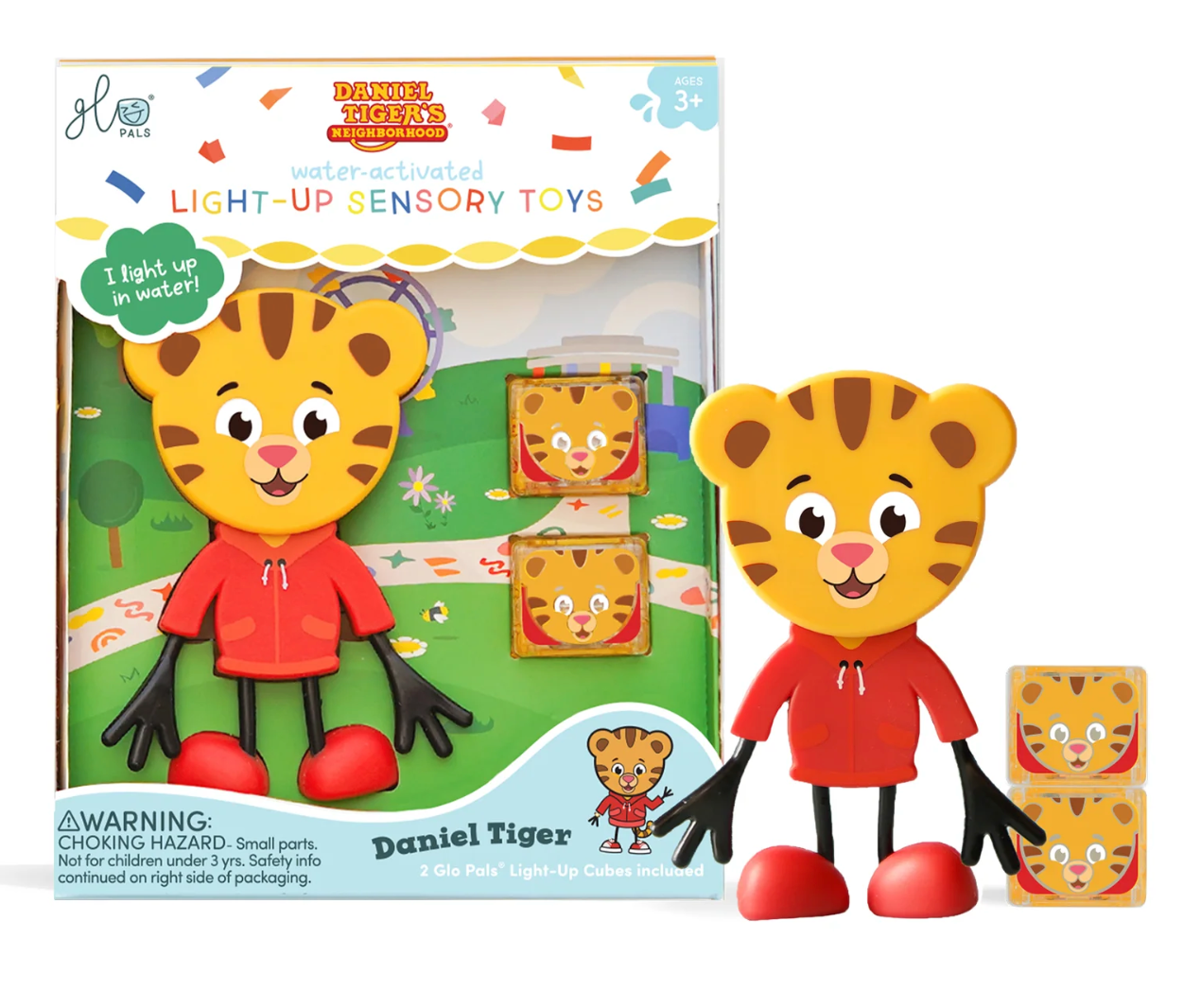 Put on your tiger stripes and get ready to play with your favorite tigertastic Pal! Insert your Daniel Tiger Light-Up Cube into the back of your Pal, drop it into the water, and watch it light up! Our Daniel Tiger Character comes with 2 Light-Up Cubes included in the box.