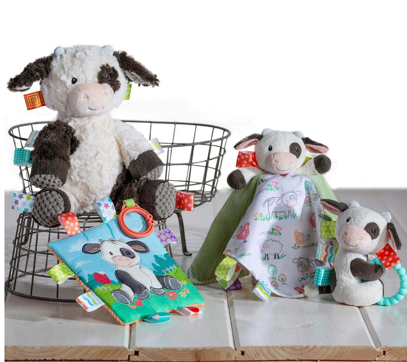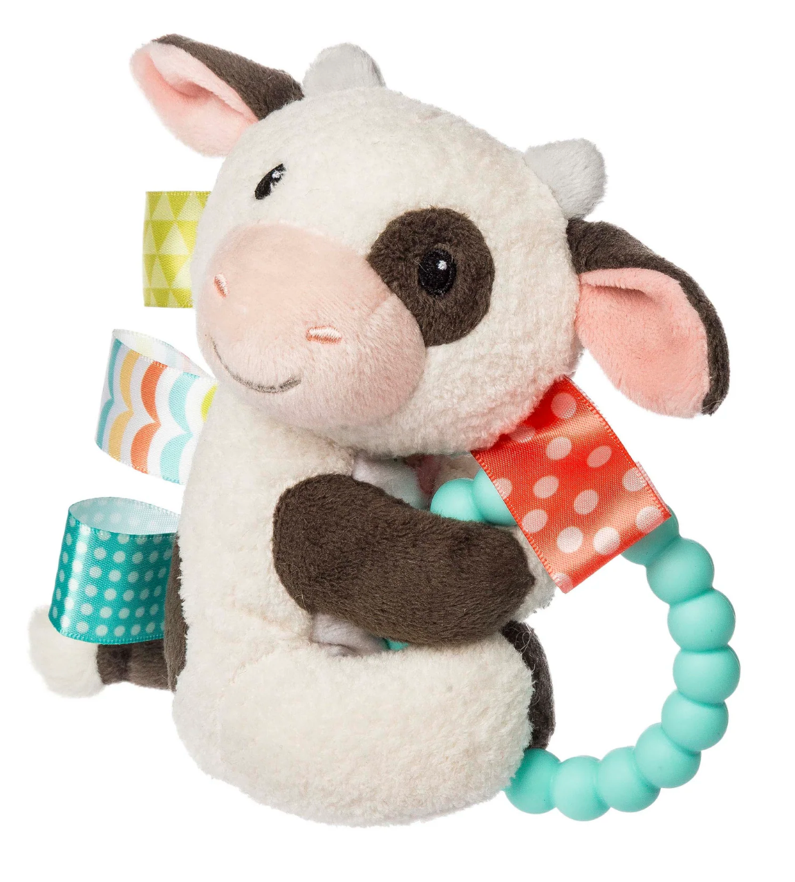 A rattle on the inside, and a silicone teether on the outside, plus the signature tactile Taggies ribbons make this toy both stimulating and soothing. The perfect size for little hands.