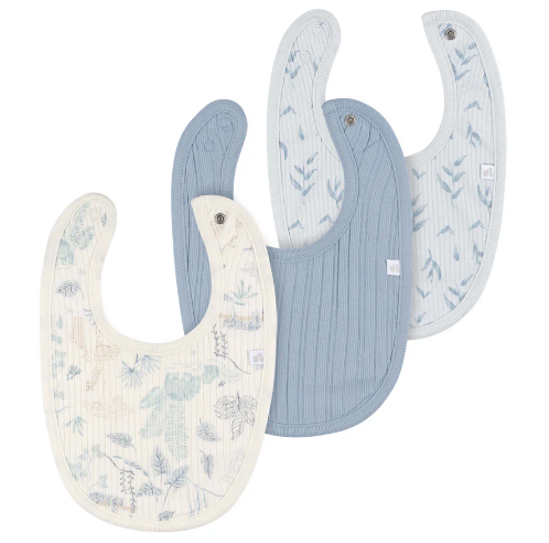 Reduce mealtime messes and protect cute baby outfits from drool with our set of three baby bibs! Crafted from soft cotton with poly knit terry, these bibs have a comfortable feel for baby. With two snap options, they’re adjustable and fit perfectly as your baby grows. Protect your little one’s outfits from spills and messes, and simply toss them in the washer and dryer for easy cleaning so they’ll be ready use again quickly.