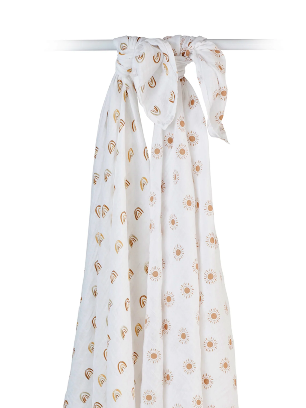 These swaddle blankets are made from 100% cotton muslin, keeping your baby feeling safe and secure. The lightweight fabric helps regulate baby’s temperature while the loose weave allows for enough stretch to achieve a snug fit. The swaddles get softer with every wash and can also be used as a blanket, a nursing cover, or a portable crib sheet.