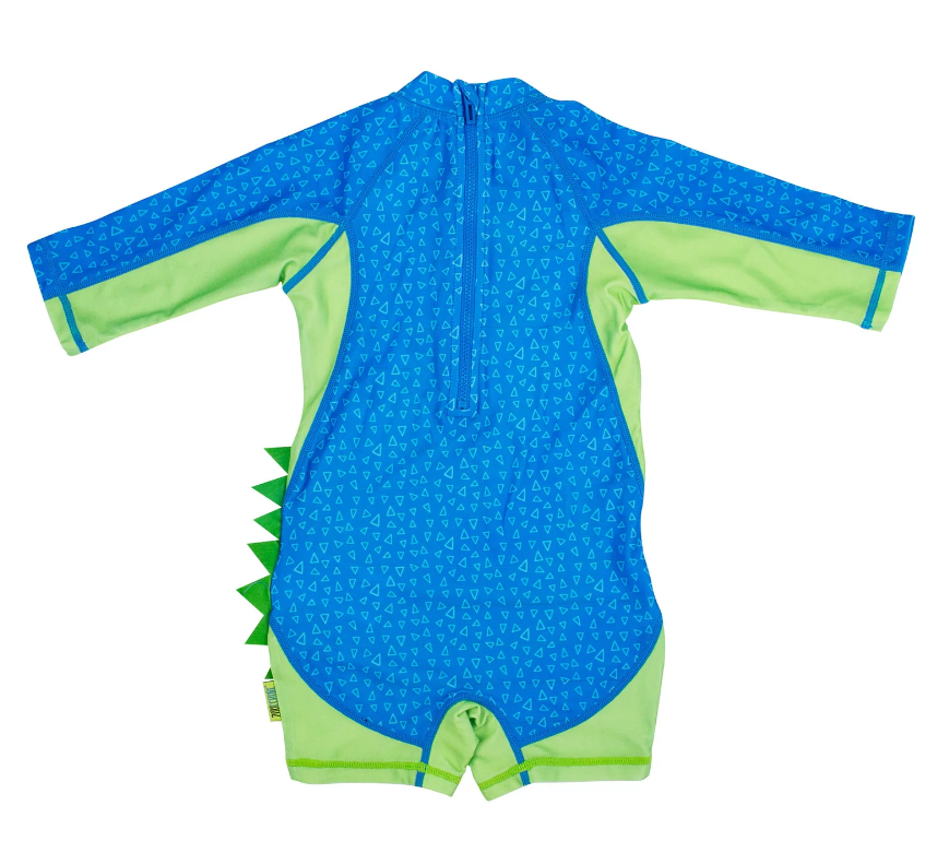 An extra-long zipper with a protective inside flap and top tab makes it super easy and quick to change in and out of and start splashing, playing, having fun in the pool or at the beach.