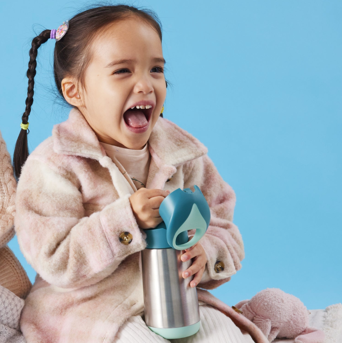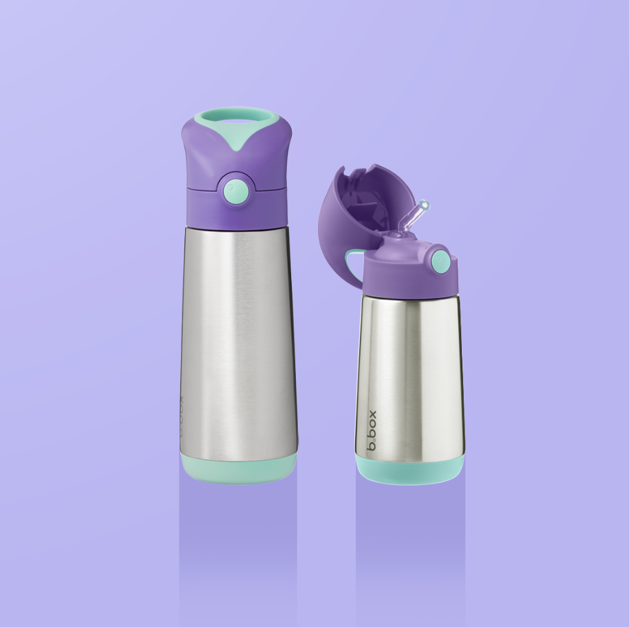 Clean modern design and big kid aesthetic. Available in six fab b.box colours. Kids love our easy drinking silicone straw top. Parents love no leaks in the bag (when the lid is closed). If using to keep liquids warm - for best performance, fill the stainless steel base with hot water for a few minutes to warm it, before pouring water out and filling with warm liquids.