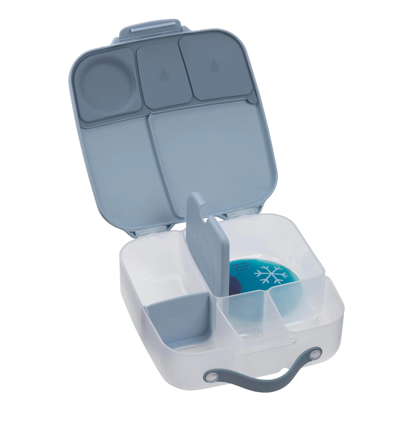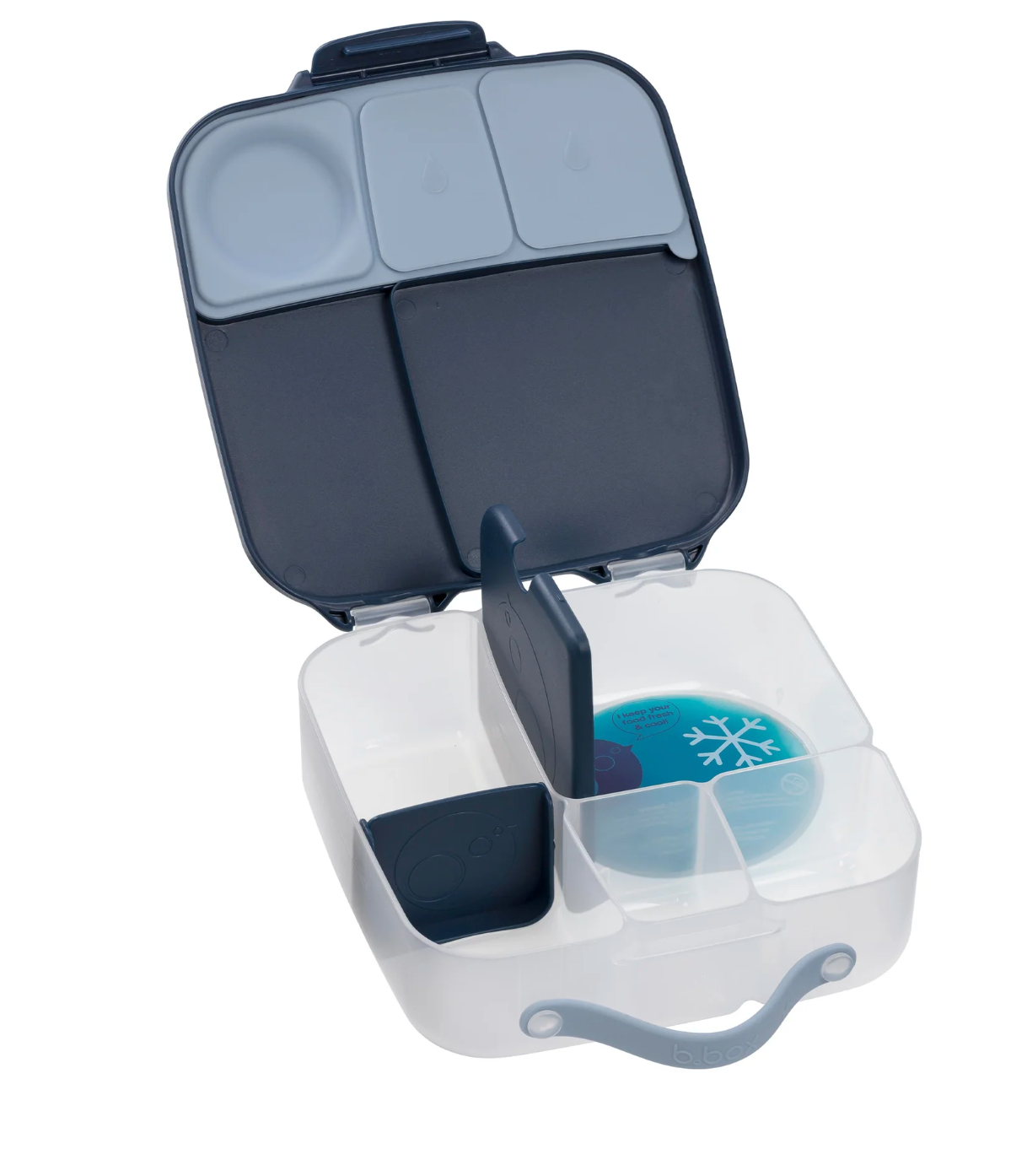 The custom divider slides across enabling parents to adjust the compartment size as they need, or remove it to fit a whole banana or wrap.